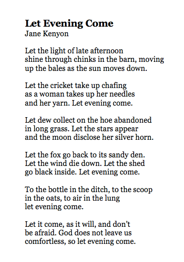 Jane Kenyon, “Let Evening Come”