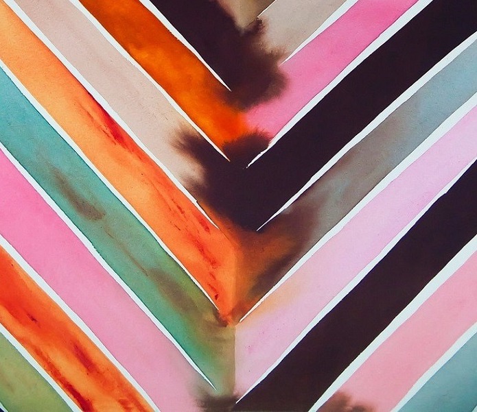 This is Phenomena Greek Fire, 1979, by Paul Jenkins (American, 1923-2012). Watercolor and mixed media on paper, 79 x 110 cm. Via Thunderstruck.